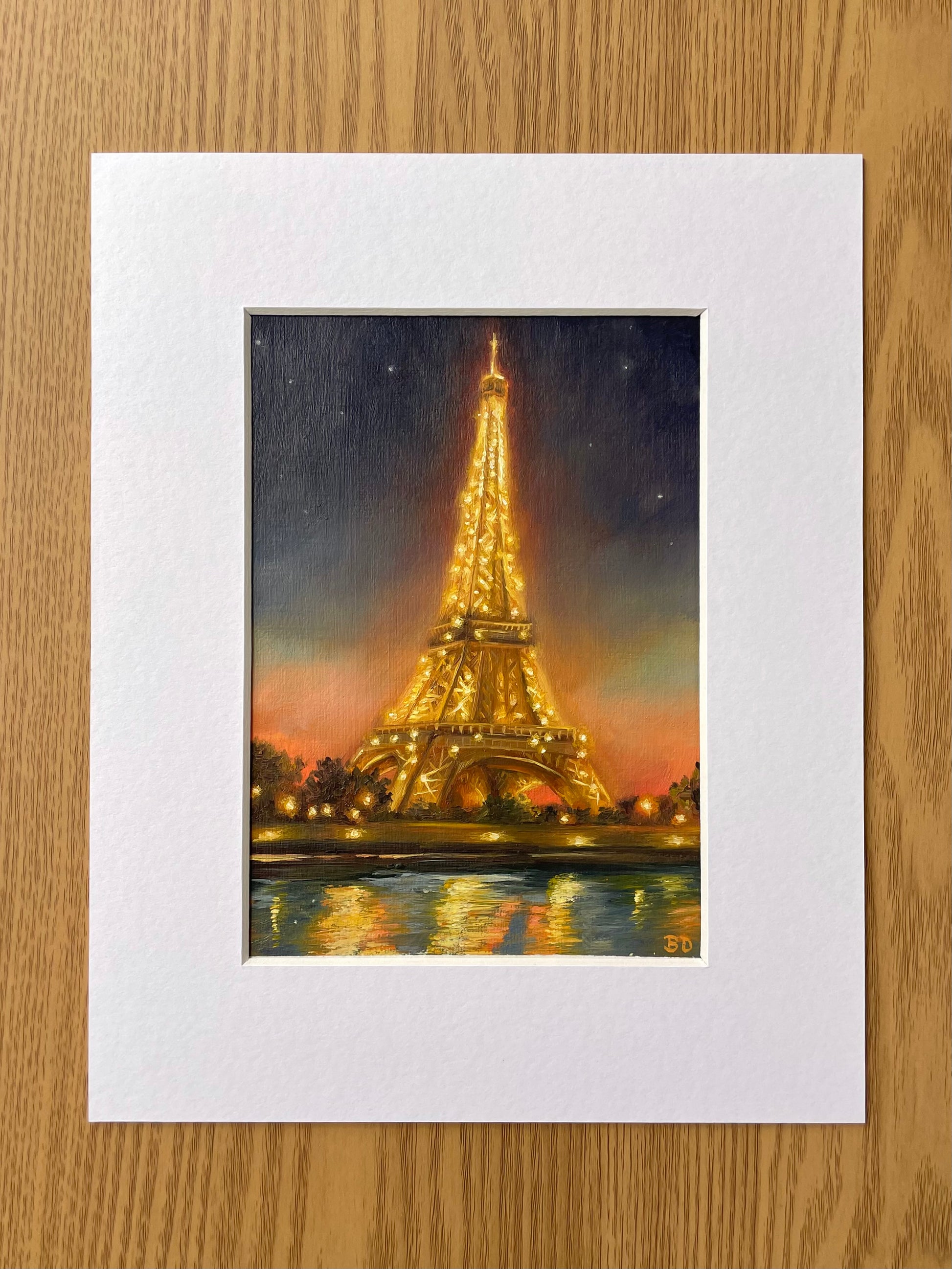 Oil on canvas paper. Mounted on a 8x10” white board with bevelled edge detailing. Image size is 5x7”.